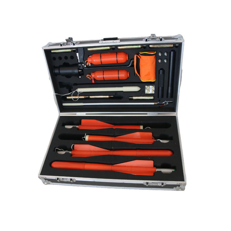Basic accessories: One projectile with an internal cylinder and a folding stock; Two land rope-throwing rescue bombs, two water rescue bombs (with self-inflating lifebuoils), one training bomb, one training rope bag (equipped with a 200-meter rescue rope), one rope-blowing gun, eight 60gCO2 compressed gas cylinders, four triggers, two water protective covers, one empty rope bag, packaged in an aluminum alloy case, with quality system certification provided and a national fire safety inspection report provided.
